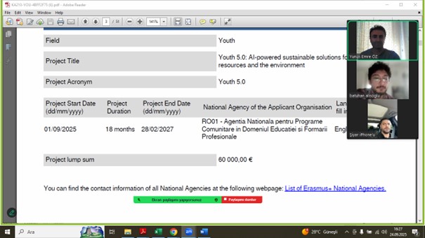 The kick-off meeting of our project, "YOUTH 5.0: AI-Powered Sustainable Solutions for Water Resources and the Environment," implemented as part of the Erasmus+ KA210-YOU project with the acceptance number 2025-1-RO01-KA210-YOU-000352976, was successfully held.